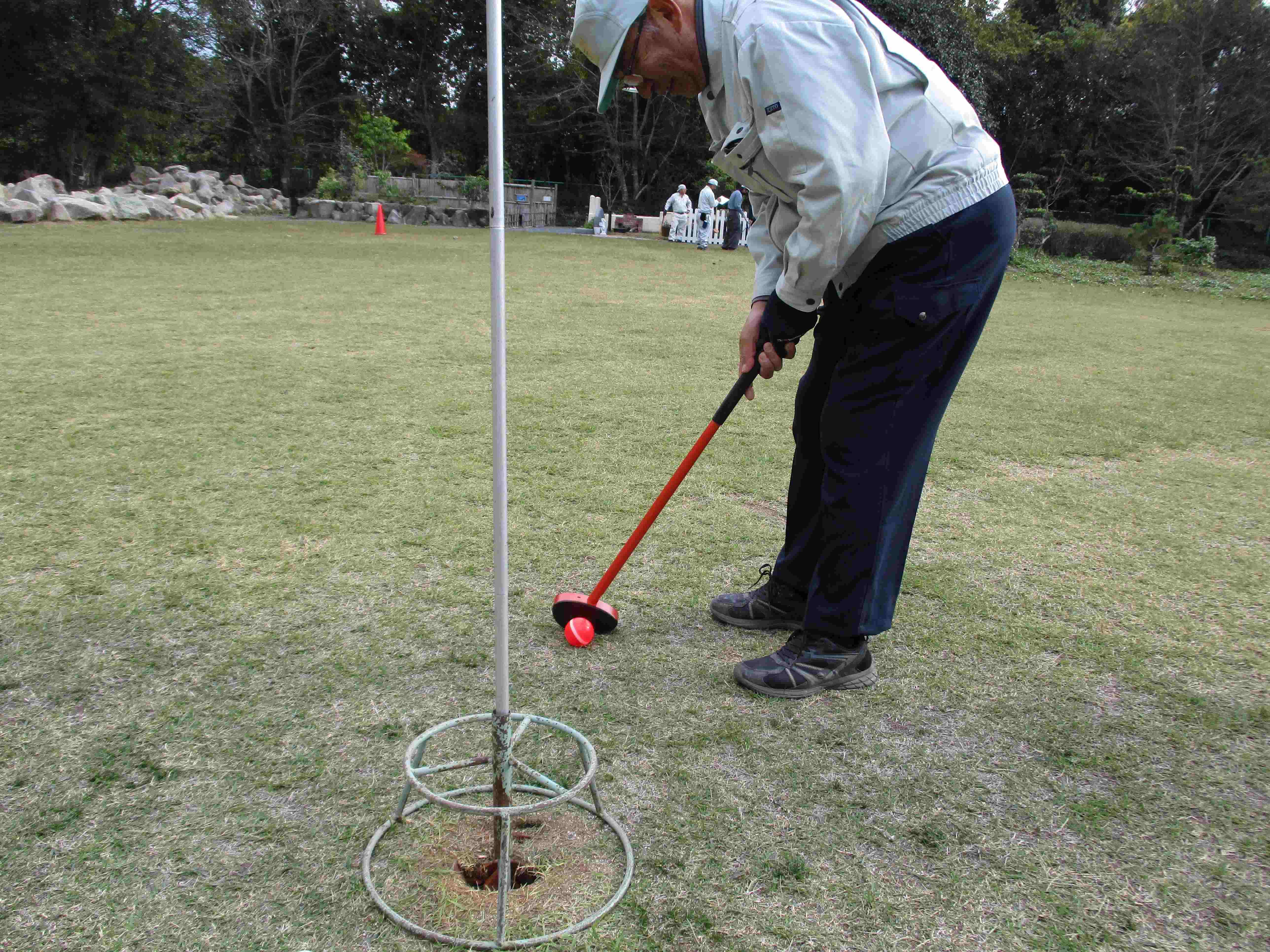 当校において初めての試みとしてガーデンエクステリア科、オフィスビジネス科合同でグラウンドゴルフ大会を開催しました。