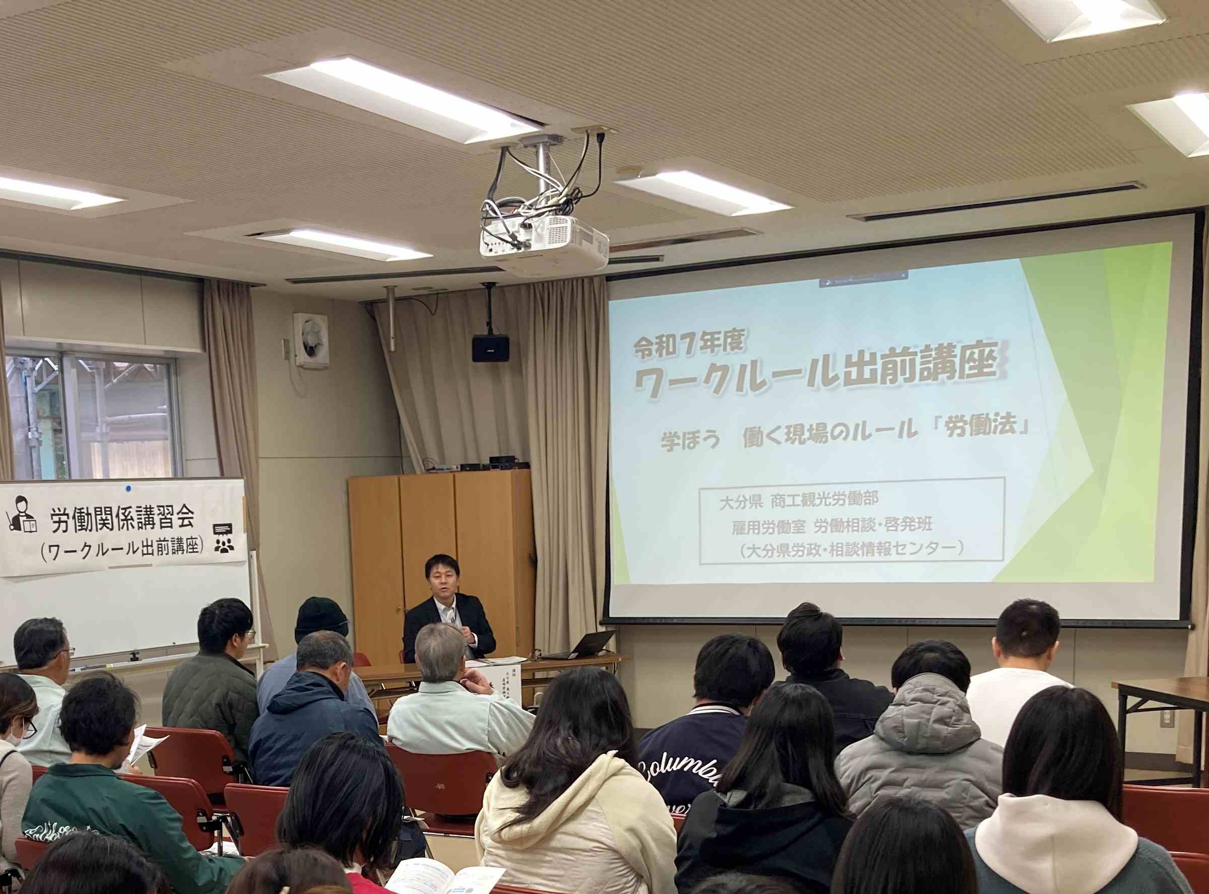 本日、大分県労政・相談情報センターの方を講師としてお迎えし、令和7年度のワークルール出前講座を行いました。