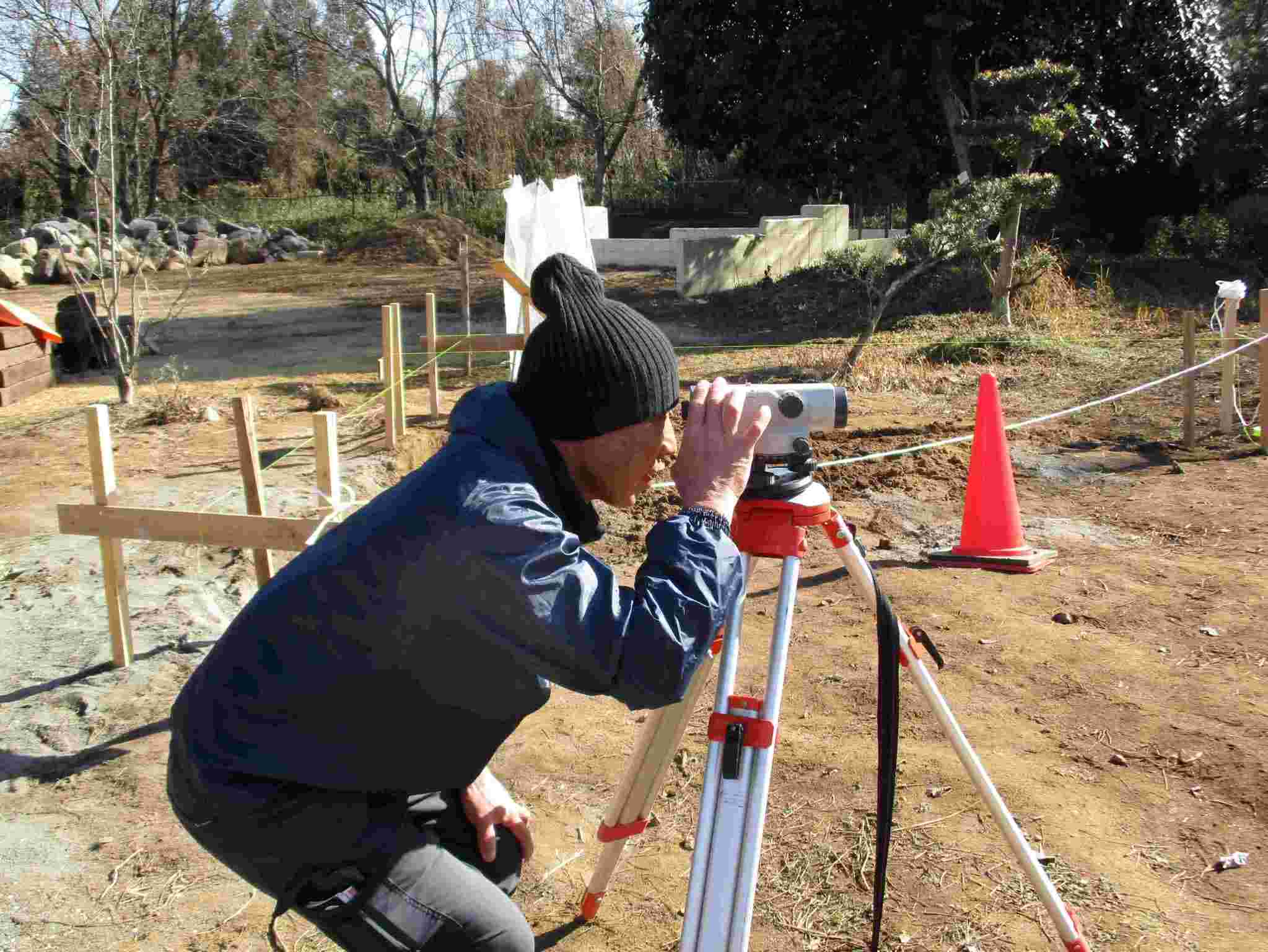 外構工事の訓練で、ブロック積みの作業を行いました。
