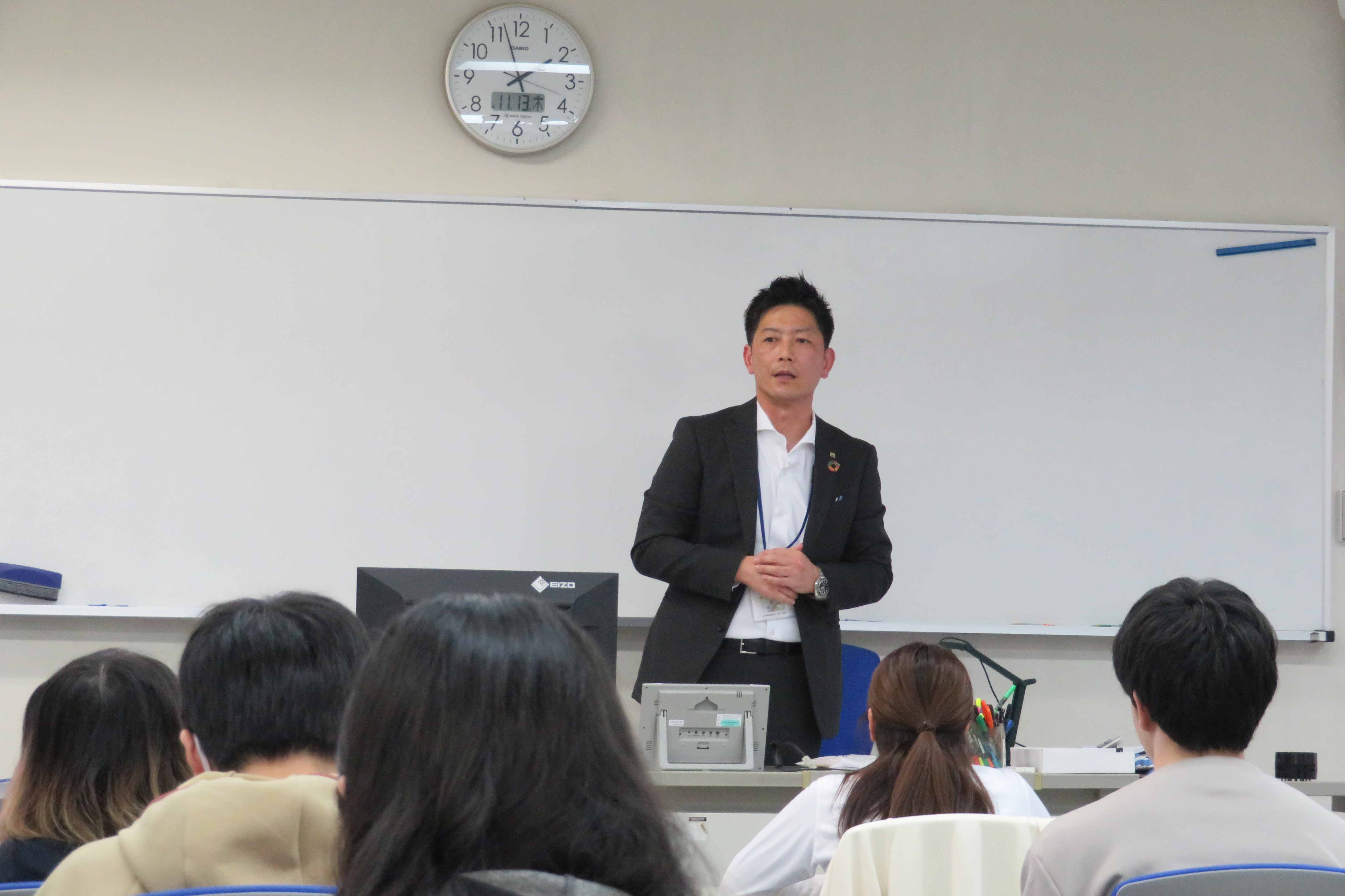 今回は、金融関係の仕事を理解し、今後の就職に活かすために、地元企業である「日田信用金庫」様をお招きして、講話をしていただきました。