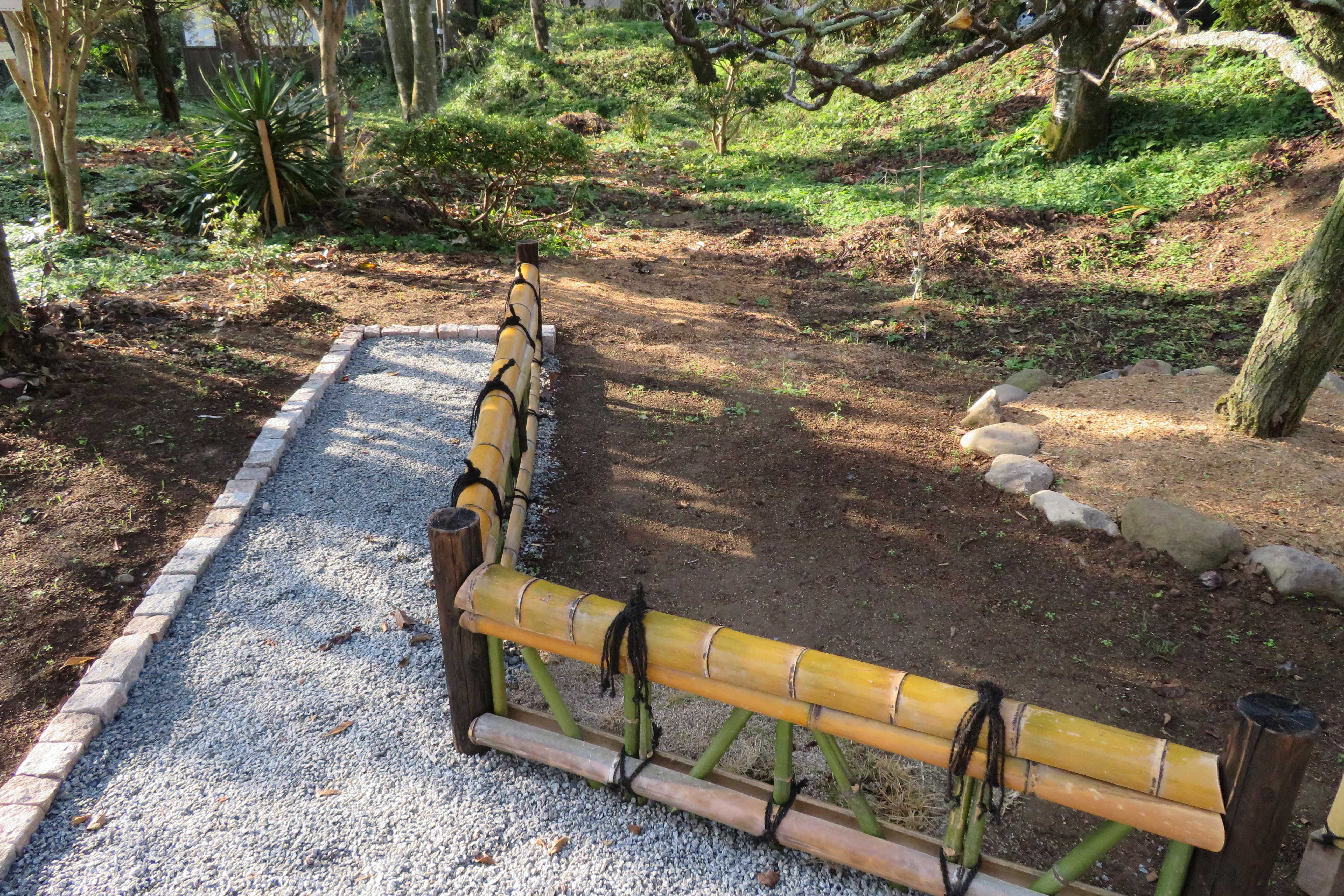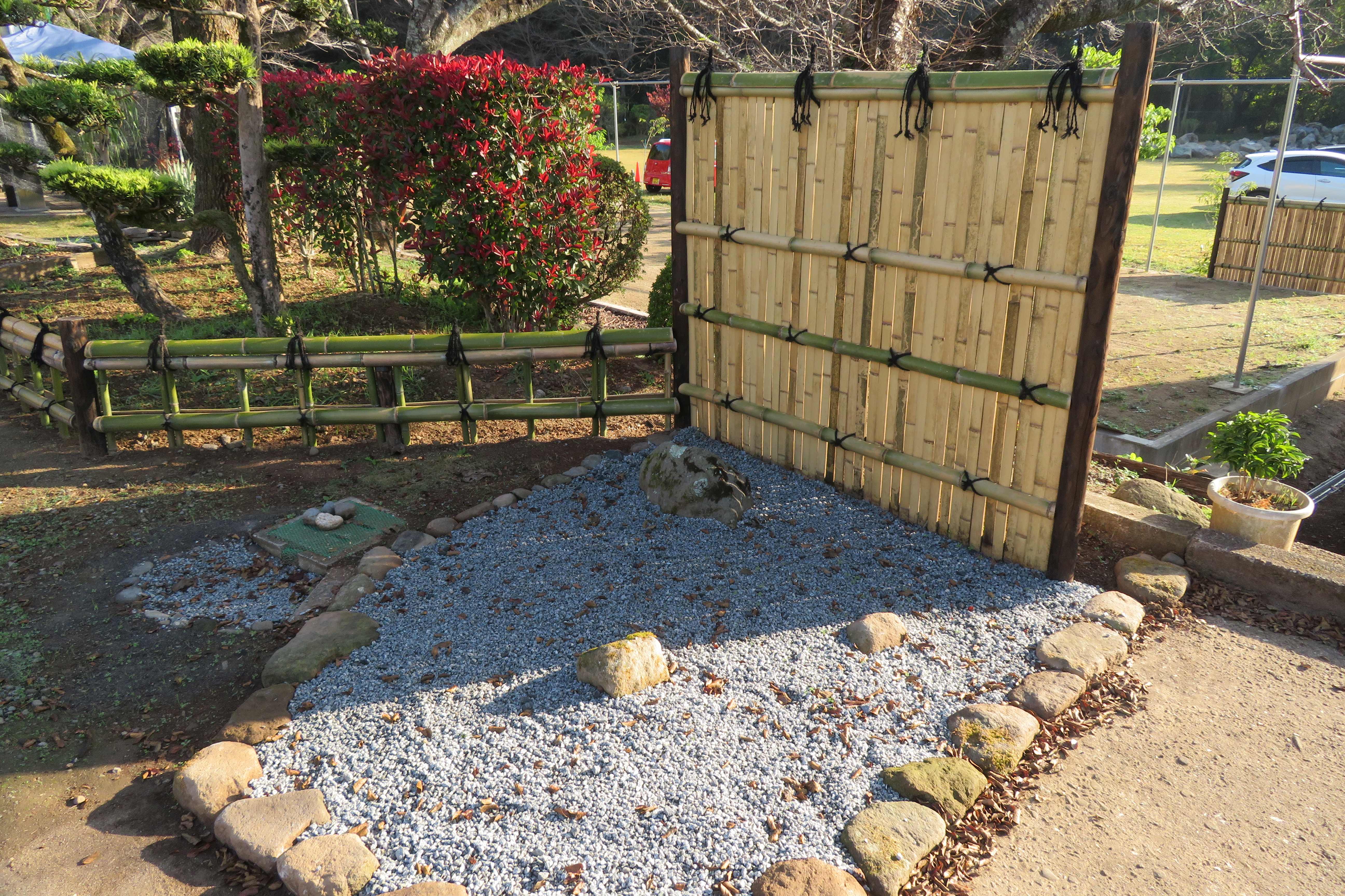 反復訓練により、組立や結束方法の確認ができたら、校内にある古い建仁寺垣の建て替えを行いました。