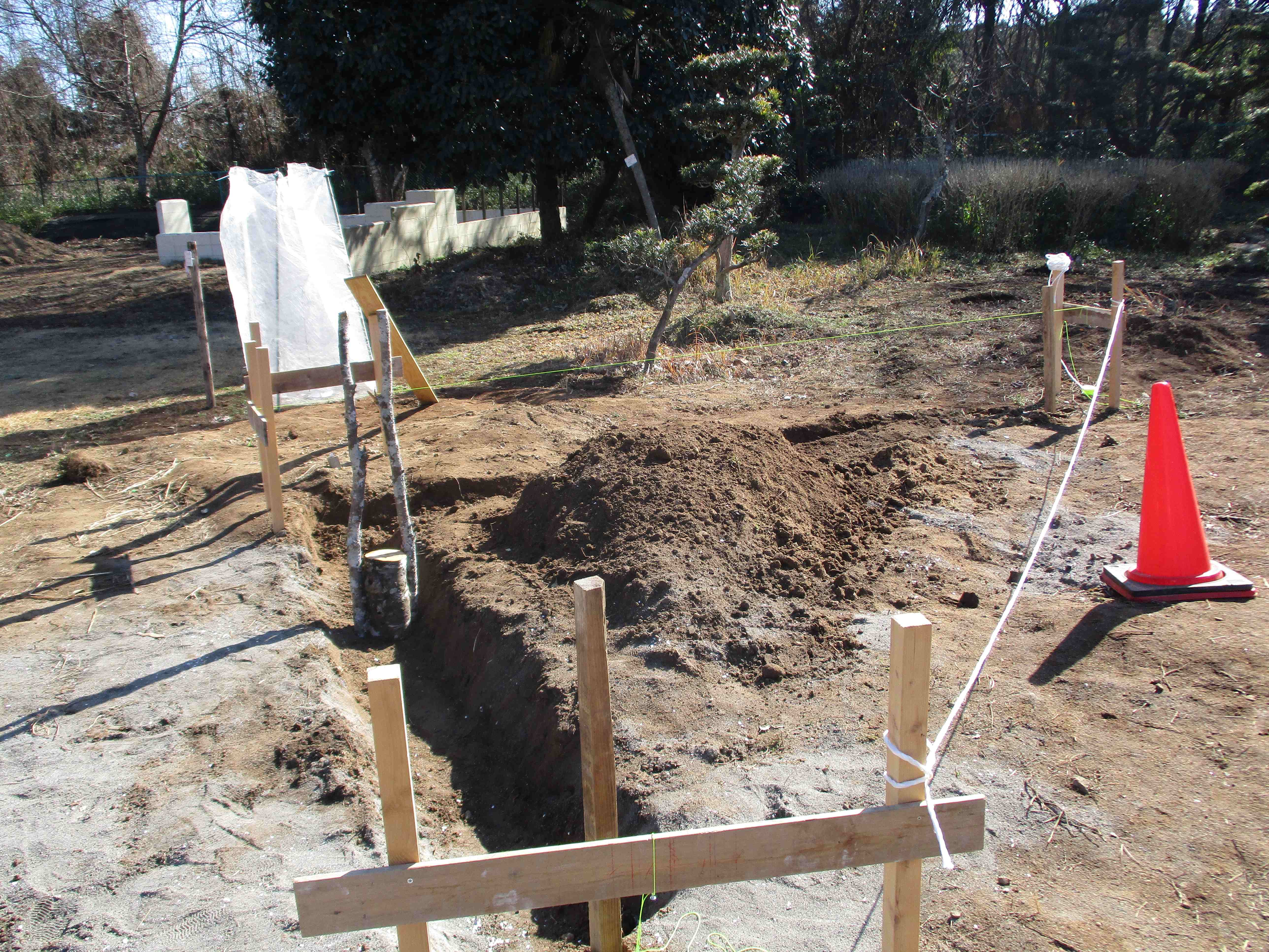 外構工事の訓練で、ブロック積みの作業を行いました。