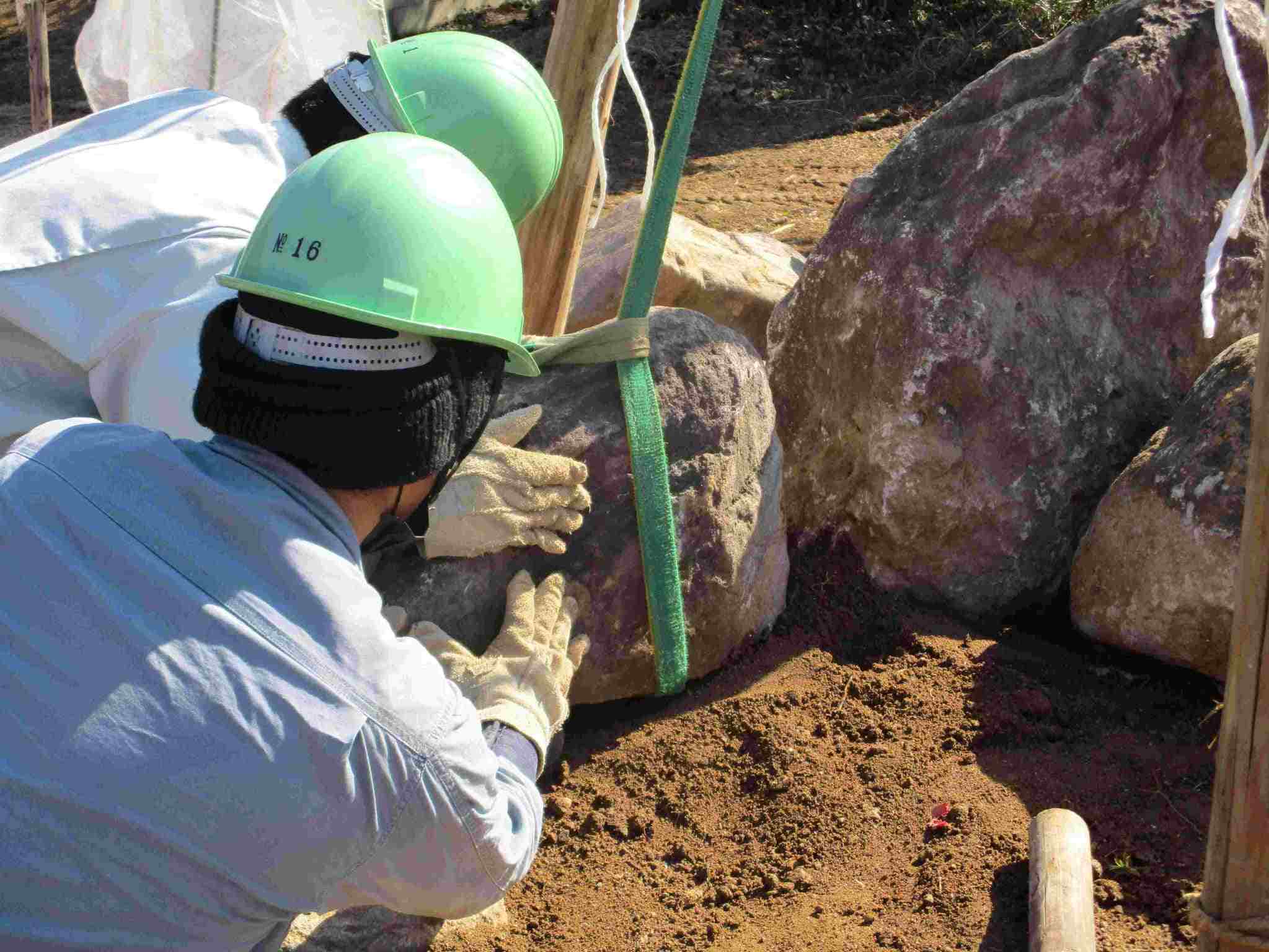 実習場内で練習した後、校内の古くなった金閣寺垣を建替えます。